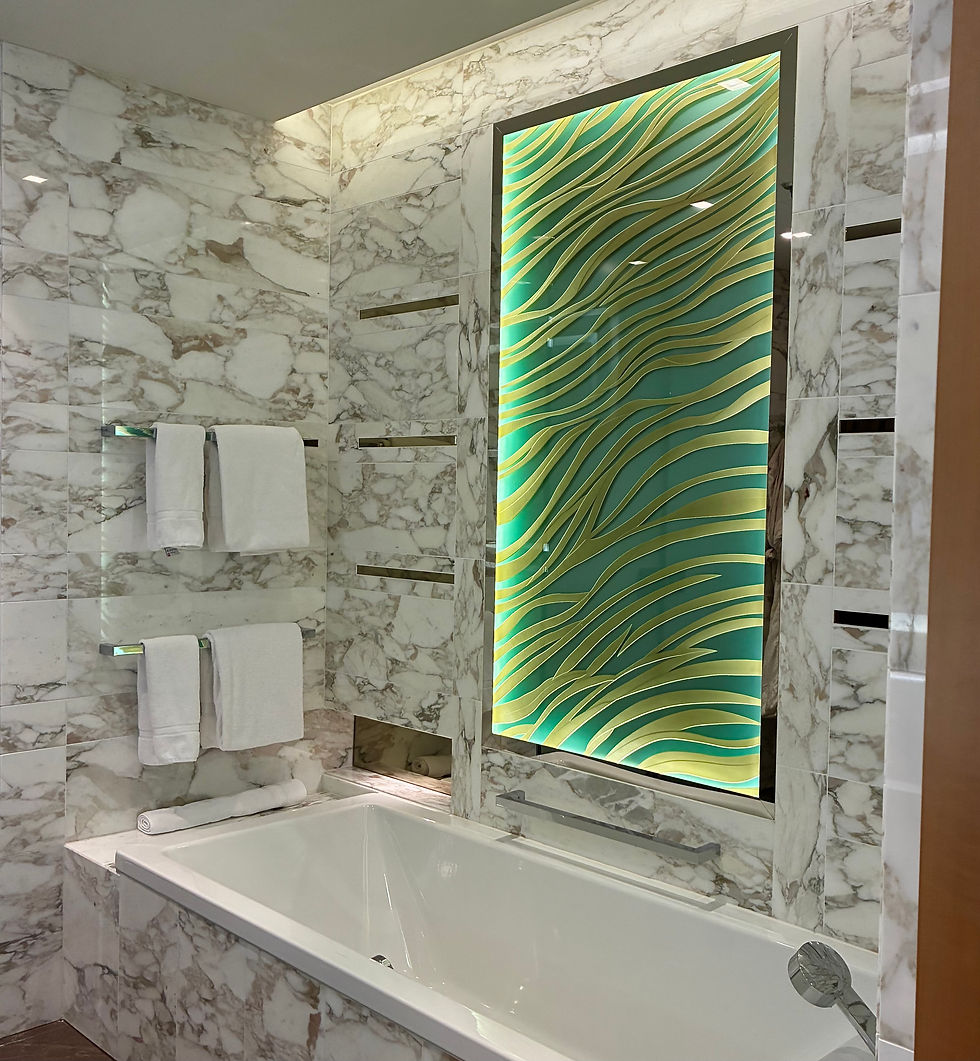 Kan man ikke undvære TV, var der endog dette i spejlet ved håndvasken samt tlf. ved toilettet 🙄